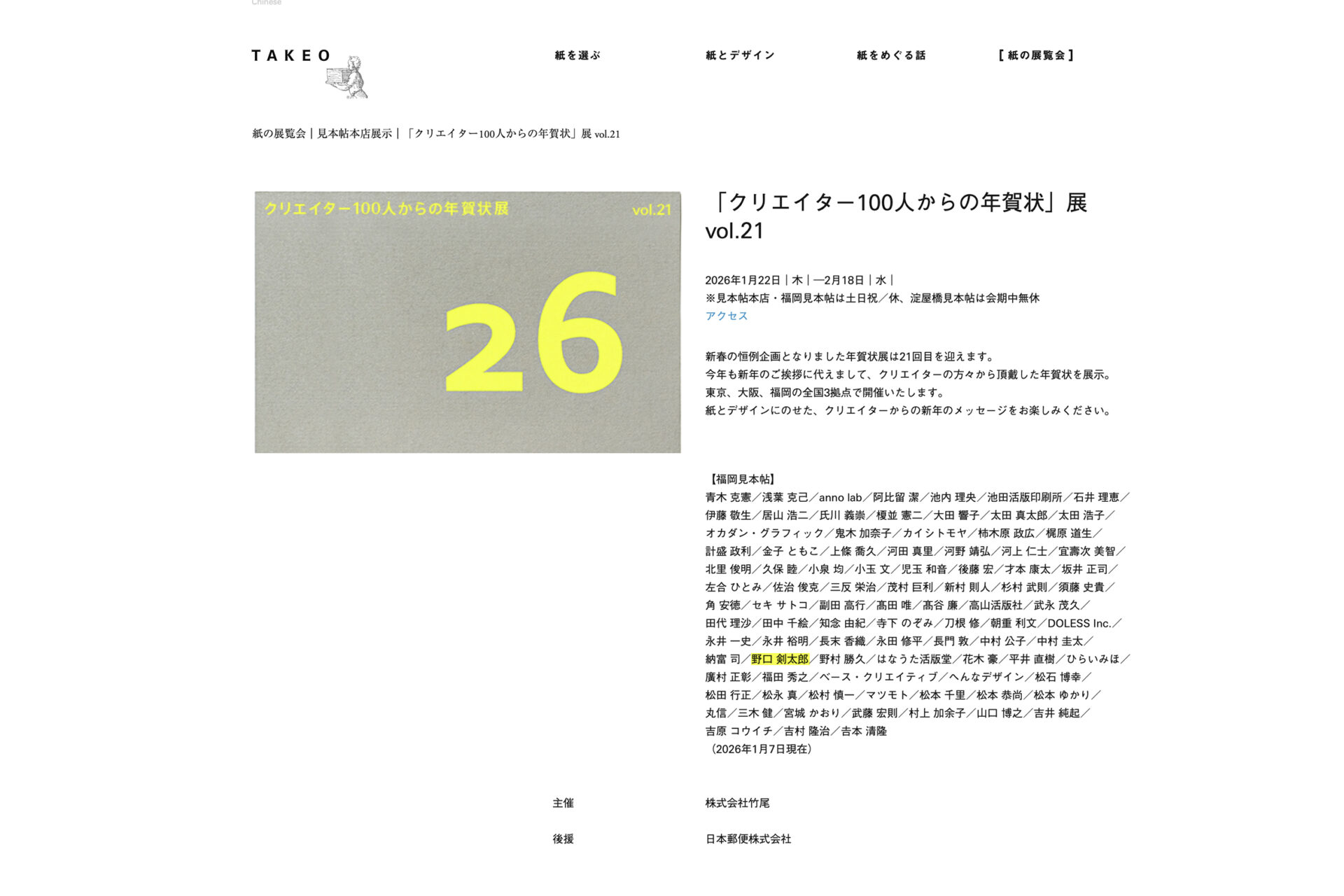 竹尾さんの「クリエイター100人からの年賀状」展 vol.21」